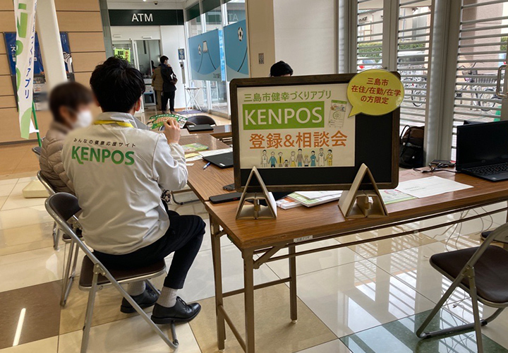 静岡県三島市では、健幸づくりアプリKENPOSを導入いただき、市民の皆様の健康づくり支援を実施。健康行動で貯まったポイントを景品に交換頂くほか、リアルイベントやオンラインイベントを開催し、アプリ利用層の拡充を図るとともに、アプリに不慣れな方には登録支援も実施することで着実に登録者を獲得しています。