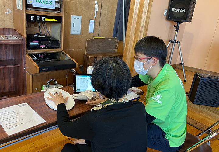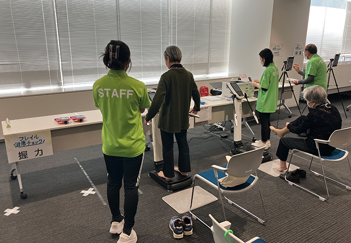 兵庫県伊丹市では、地域のショッピングモール等の会場で、高齢者を対象として、弊社が共同開発したタブレット型測定機器を用いた測定会を実施。測定後は日常生活で実行可能な改善策についてフィードバックを行い、参加者のフレイル及び認知症予防への意識啓発と、ハイリスク者の早期発見と早期支援に貢献しました。