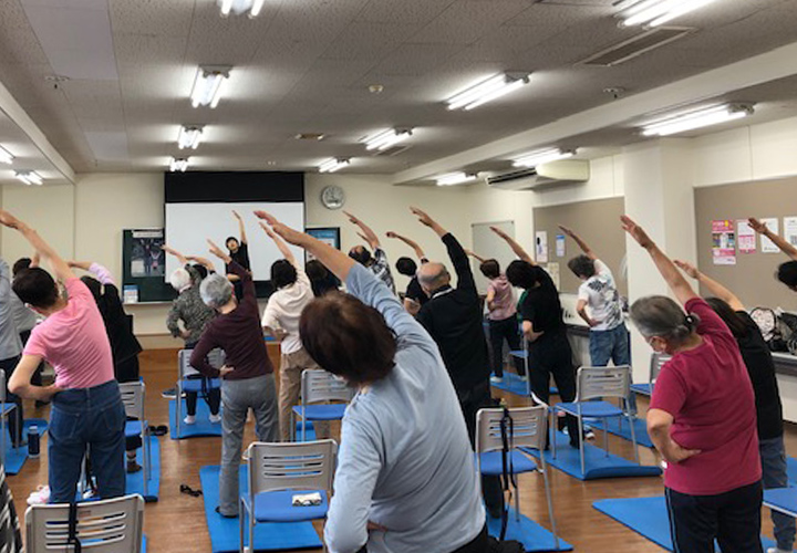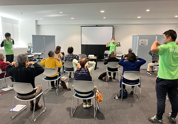 順天堂大学と共同開発したプログラムを含む健康体操「ラクティブ」で、年齢・場所を問わず全身の筋肉維持・向上が期待できます。