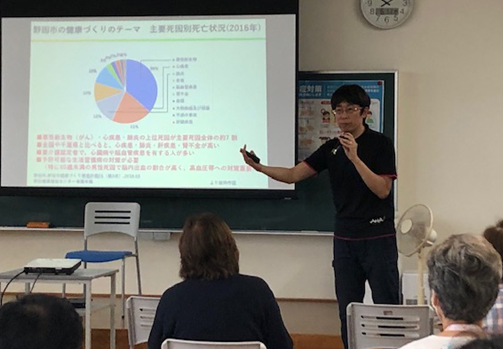 株式会社THF様より再委託を受ける形で、健康教室「のだまめ学校」の一環として健康づくり・介護予防の効果が期待できる講話や実技を提供し、市民の皆様の健康づくり実現に寄与しております。