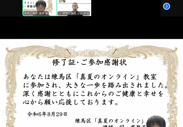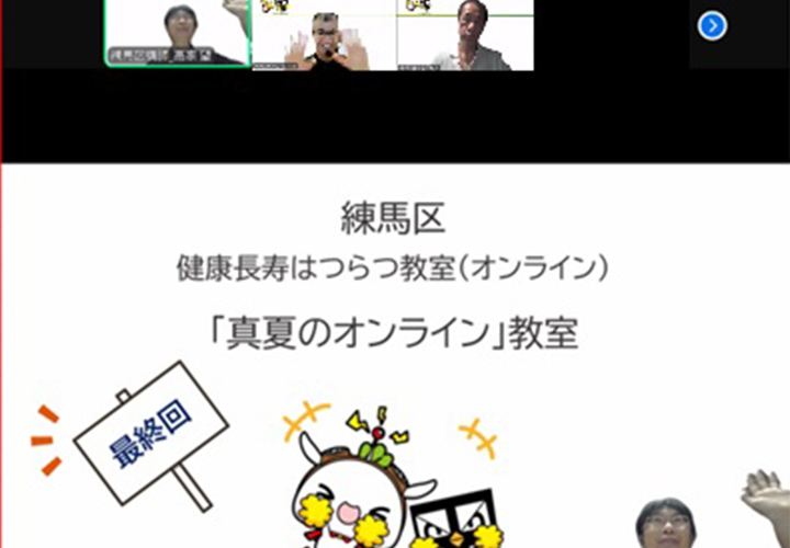 東京都練馬区では、区内65歳以上を対象に完全オンラインの介護予防教室を実施。外出頻度が低下する夏季に自宅で安全に取り組める場として、運動・フレイル予防の講話・交流を図るワークを展開しました。全参加者が笑顔でやりとりでき参加率や満足度も高く、オンラインでも継続した運動機会ならびに社会参加や居場所構築が実現でき、持続的な介護予防の実践や普及啓発に貢献しました。