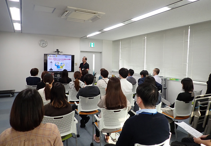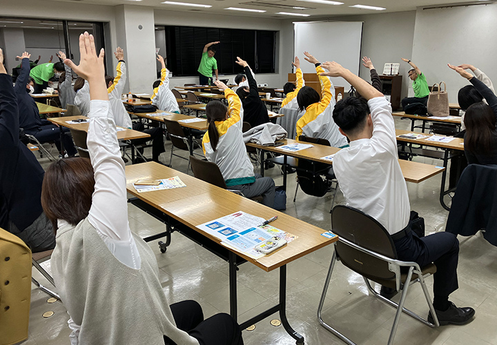 兵庫県では、県内の健康づくりチャレンジ企業(※)向けに、健康づくりに関する研修会や運動教室に講師を派遣する事業を令和6年度から新たに開始。弊社専門スタッフを派遣し、健康づくりに時間を割きづらい働き盛り世代の健康づくりを推進しました。※働き盛り世代の健康づくりを推進・支援する兵庫県の企業向け取組